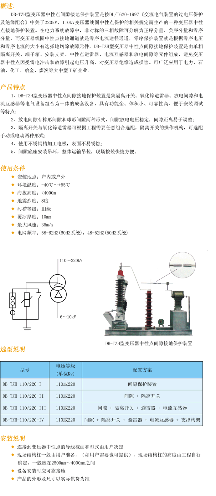 产品名称:DB-TZH变压器中性点间隙接地保护装置
