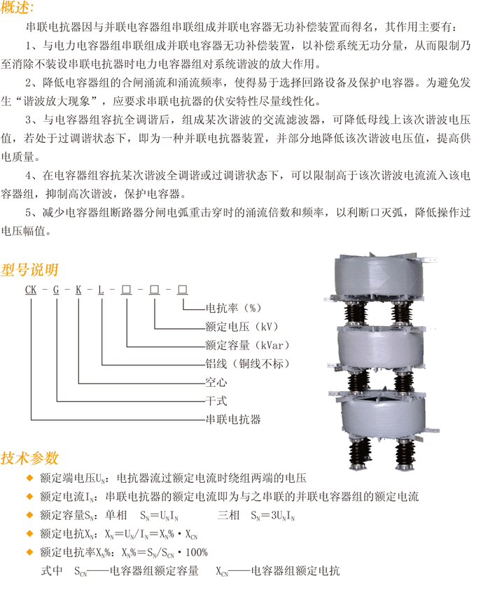 产品名称:DB-CKGKL高压干式空心串联电抗器