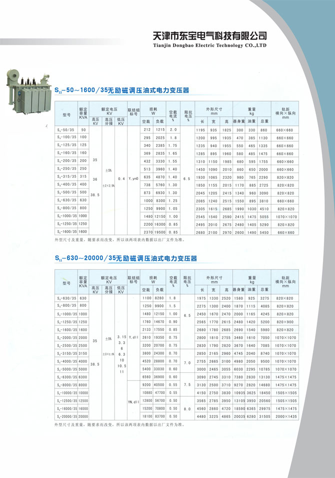 产品名称:S11-50~1600/35无励磁调压油式电力变压器