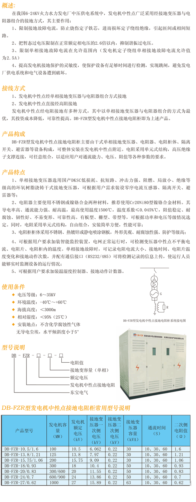 产品名称:DB-FZR发电机中性点接地电阻柜